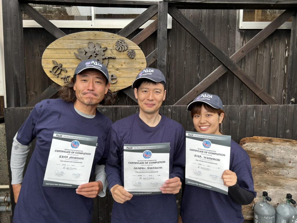 新インストラクター誕生 9月末から始まったIDCに3名の方が参加。 昨日。今日 音海にて 全員合格されました! おめでとうございます! それぞれのご活躍期待しています! お疲れ様でした これから頑張ってくださいね〜