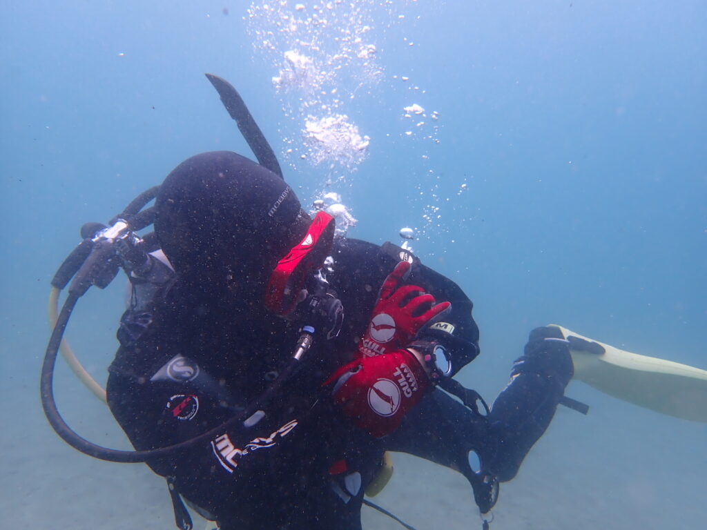 昨日出来上がったばかりのマイドライスーツでのレスキューコース Y里ちゃん頑張ってます!