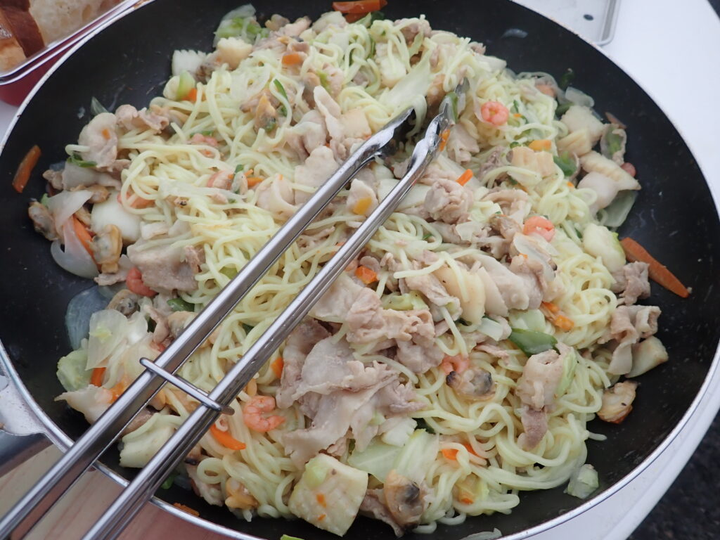 夜はストロベリーファームにて BBQ! Rayさん焼きそば焼いてます 笑