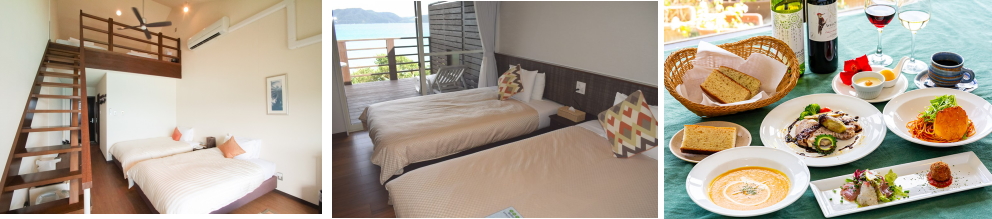 ネイティブシー奄美さん利用。全館オーシャンビューで、自然豊かな場所にあり、どっぷりと自然に漬かれます。周りには多くの花が咲き乱れ、鳥や蝶が舞っています。倉崎ビーチを望む高台にあり、全室はもとより、レストラン、ロビー廊下までオーシャンビューです。部屋数は14室、定員は50名。14室だけの小じんまりしたホテルです。