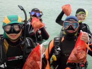 水中のゴミ拾いはダイバーにしかできません。