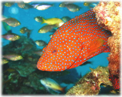 ハナゴイ・キホシスズメダイ・ユカタハタ・サザナミトサカハギ・クロヘリイトヒキベラなどが見れます。