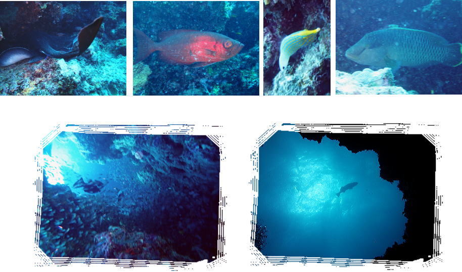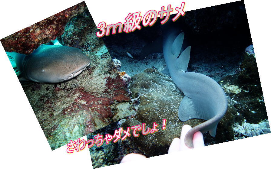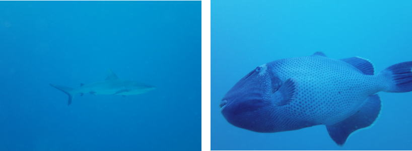 サメは ホワイトチップ ブラックチップ が あちこちで優雅に泳いでます。頻繁に見るので 普通種です(笑)。