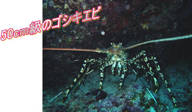 岩陰には 巨大すぎるゴシキエビ 小笠原で見るよりデカイです。大迫力!!