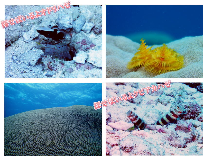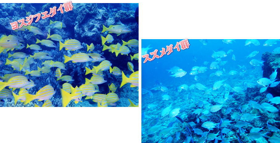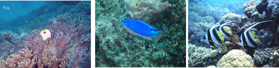チョウチョウウオ系やスズメダイ系 ハタタテダイなども たくさんいます 魚の種類がとても多いです。