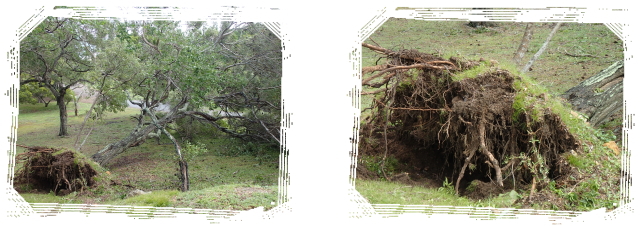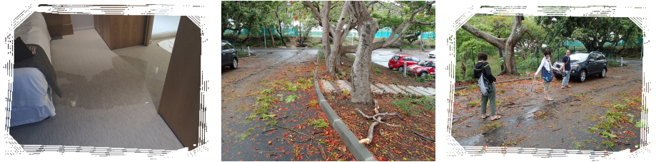 嵐のあとです。木は倒れ葉は落ち、そして ホテルは水浸し・・・・なんてこった!!