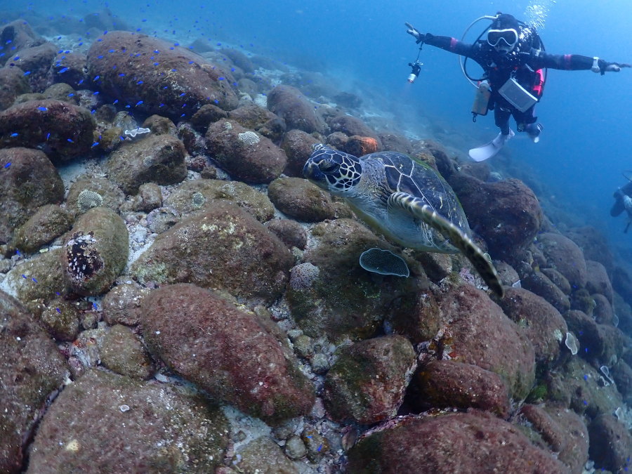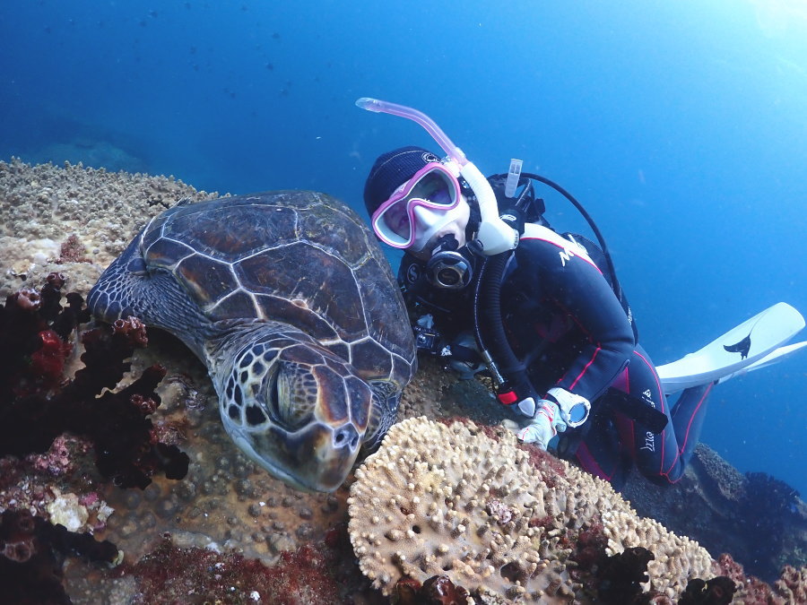 Oさんもウミガメと2ショット!これは、別のウミガメです!