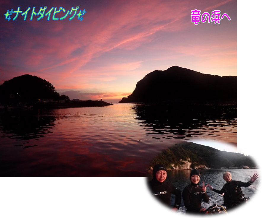ナイトダイビング前の夕焼けきれいだぁー!竜の浜へ