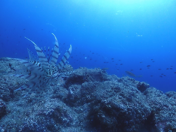 ミノカサゴは、ゆったり泳いでた