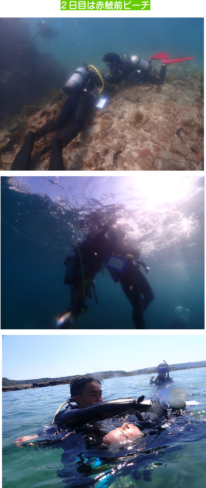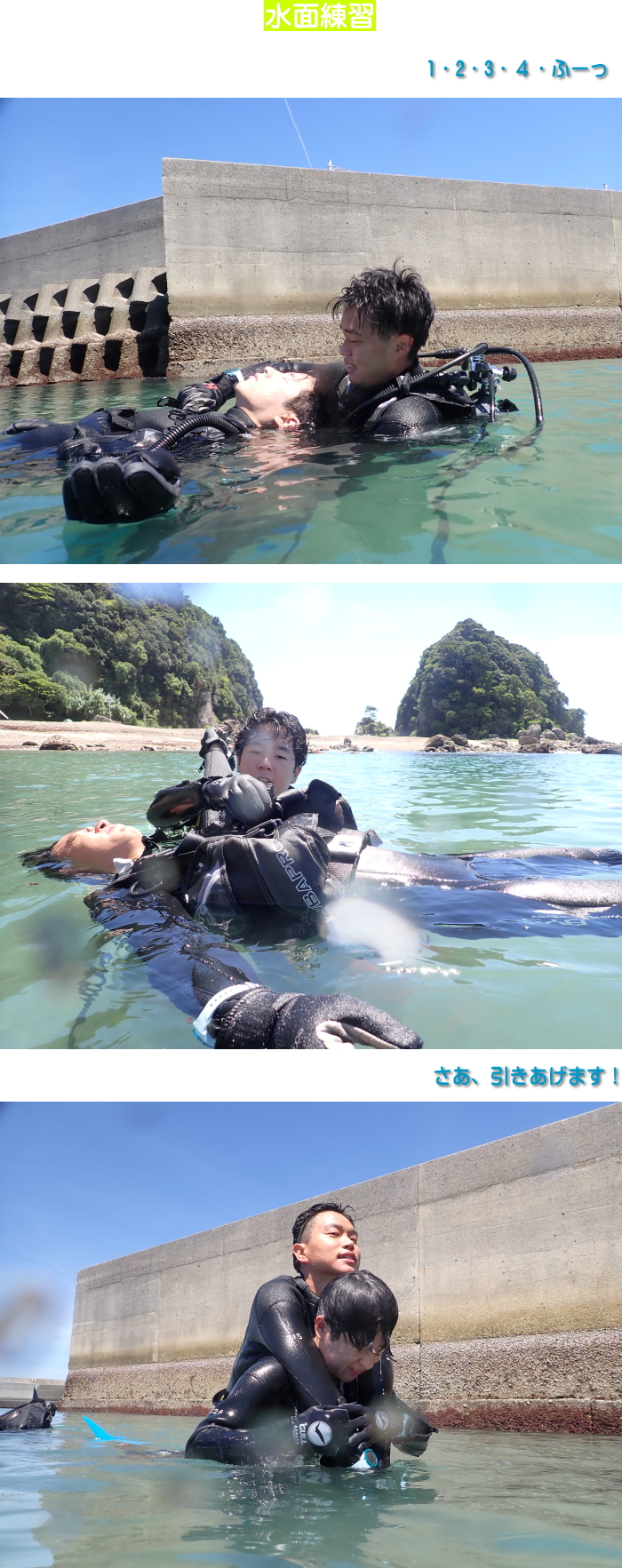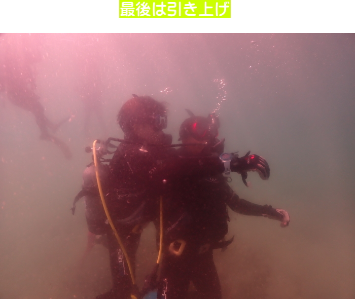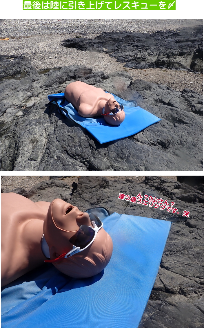 水中、水面からの流れで陸まで引き上げてレスキューを〆。