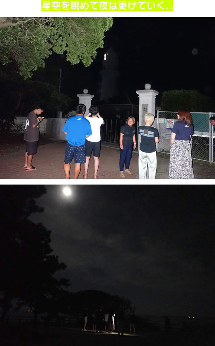 満月と夜の海に浮かぶ釣り船、星空が素敵でした♪