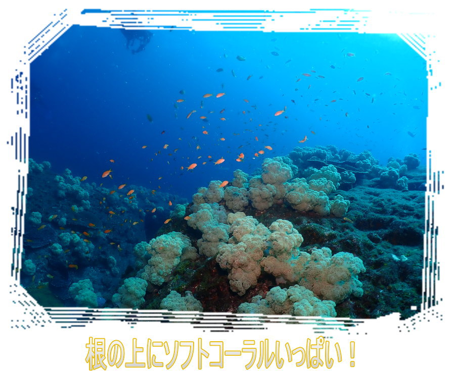 根の上は、ブロッコリーみたいなソフトコーラルだらけ!