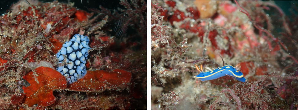ウミウシがちらり、フリエリイボウミウシ、アオウミウシ