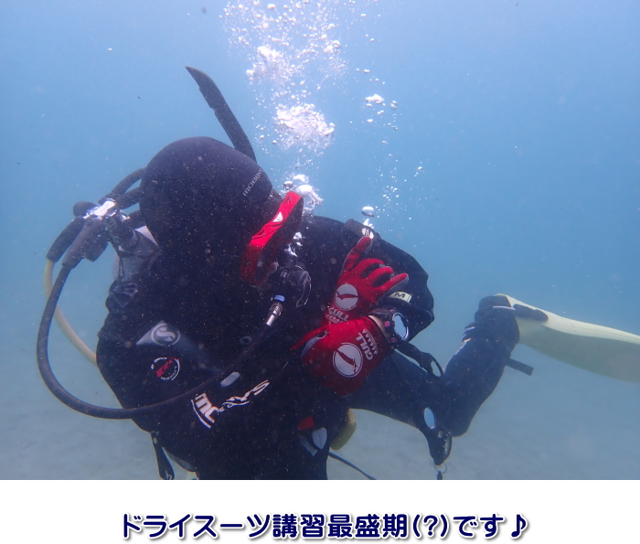 そのころビーチではドライスーツ講習も開催。最近ドライスーツ講習が多く