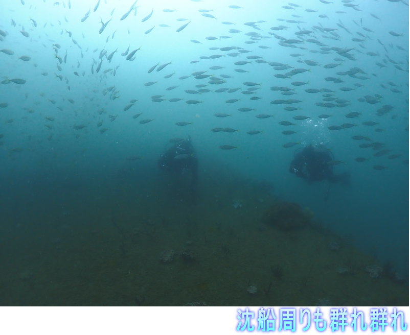 沈船周りは、アジやイサキやクロホシイシモチが群れ群れ!