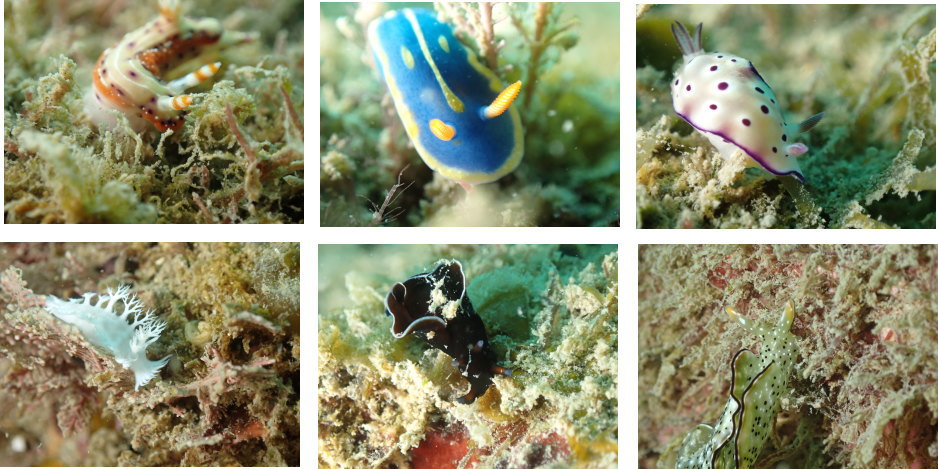 シロハナガサウミウシ、クロヘリアメフラシ、コノハミドリガイ
