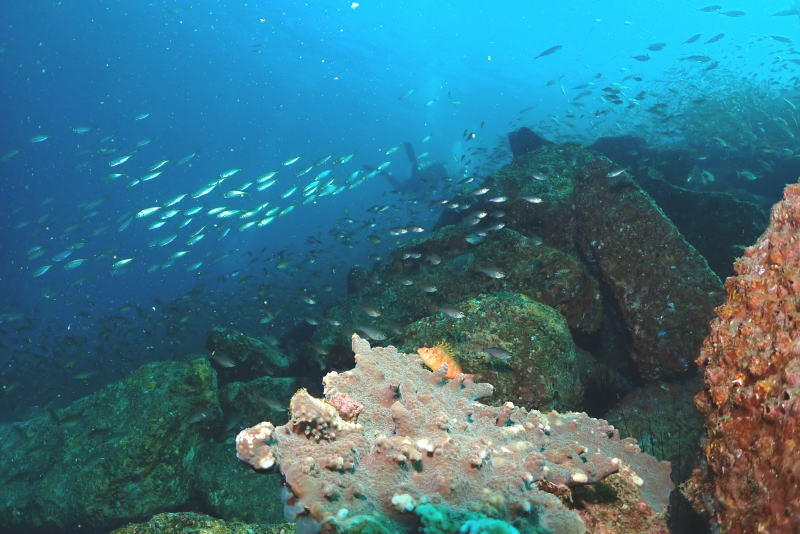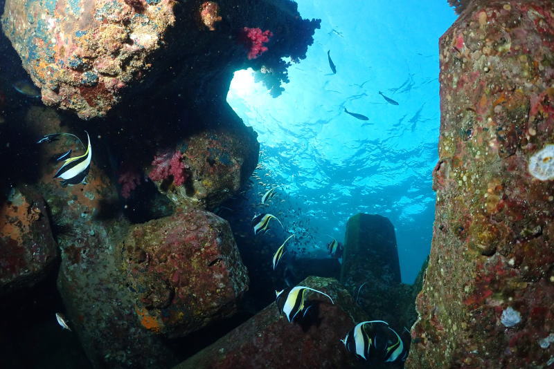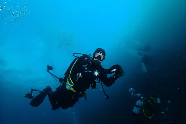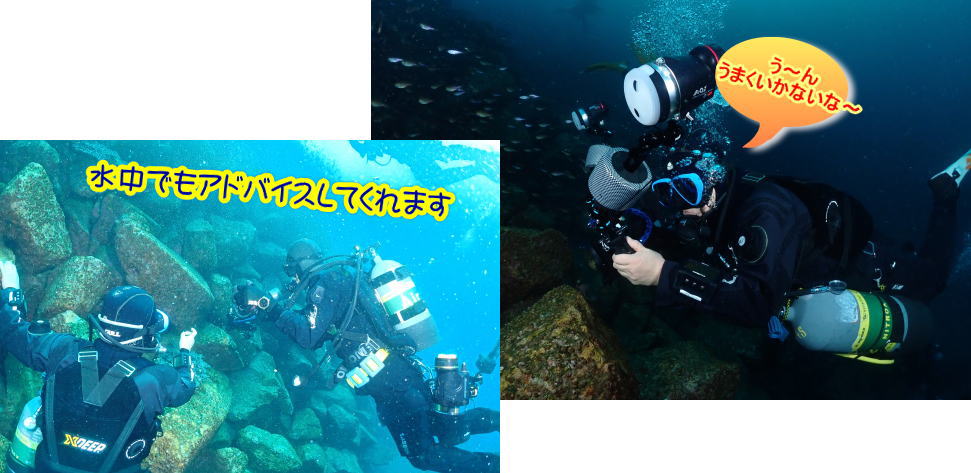 ダイビング中茂野さんが水中を回ってアドバイスしてくれました