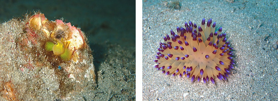 ミジンベニハゼ、トゲトゲウミウシ