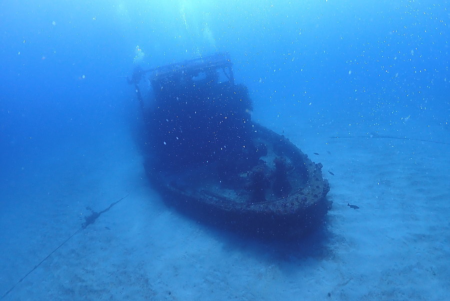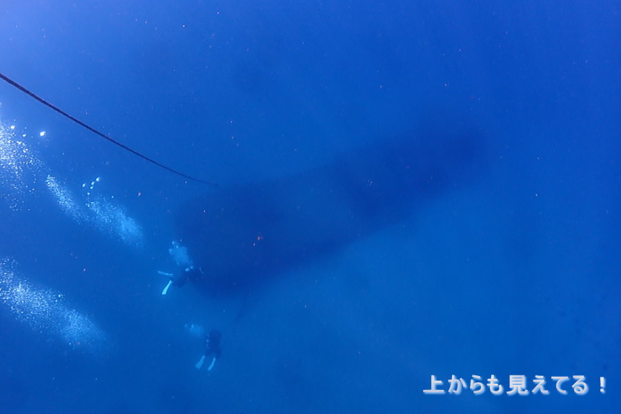 潜降してすぐくっきり沈船見えます!