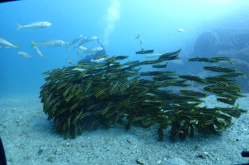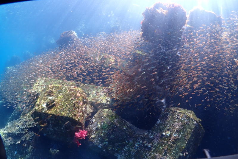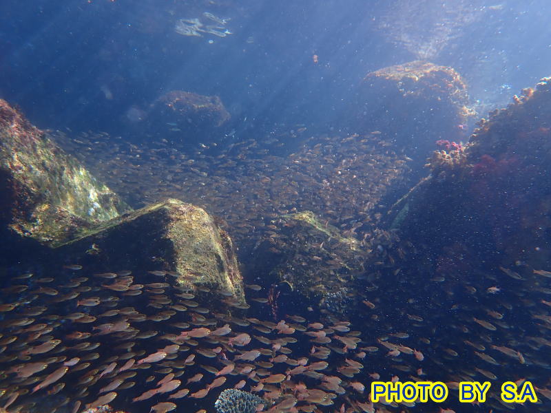 水面付近にはキンメモドキとクロホシイシモチがいっぱい
