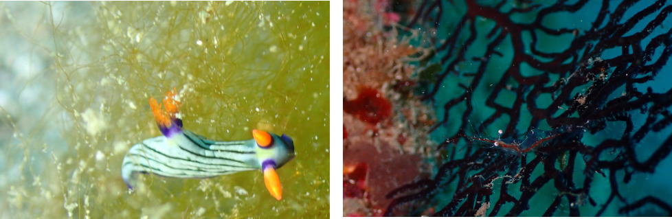 セトリュウグウウミウシ、アカスジカクレエビ